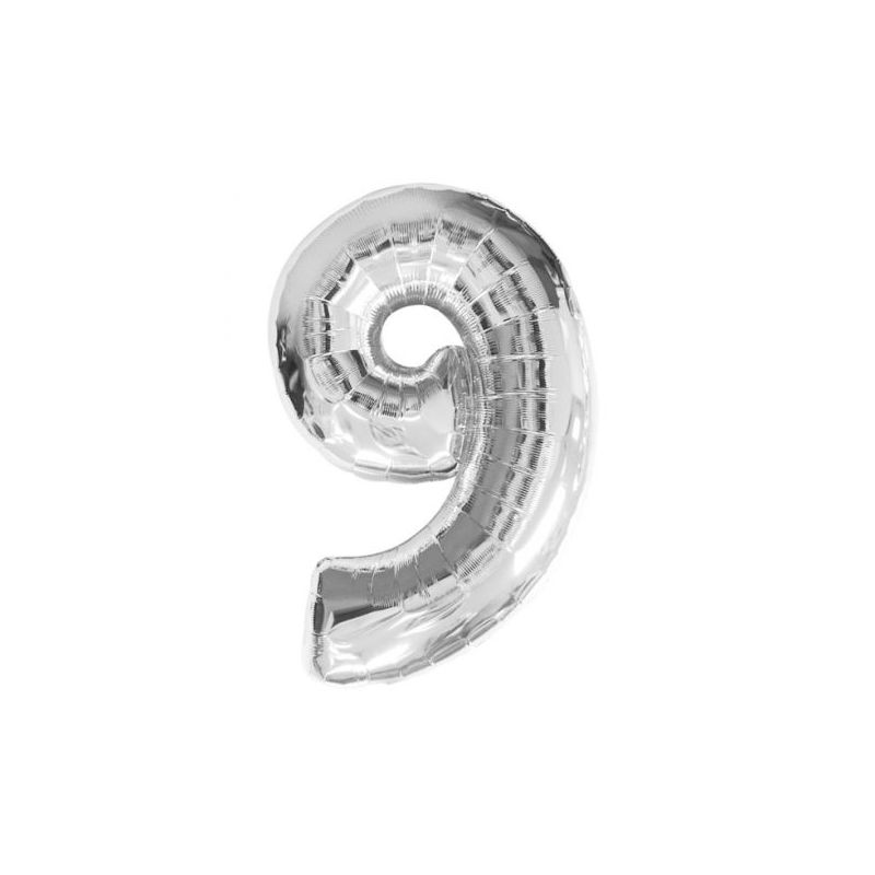 Spectaculaire ballon métallique argenté en forme de chiffre 9. Une option originale et frappante pour surprendre quelqu'un lors de son anniversaire. Possibilité de le gonfler avec air ou hélium, contient une petite vanne pour empêcher la fuite. Article de haute qualité et durabilité.