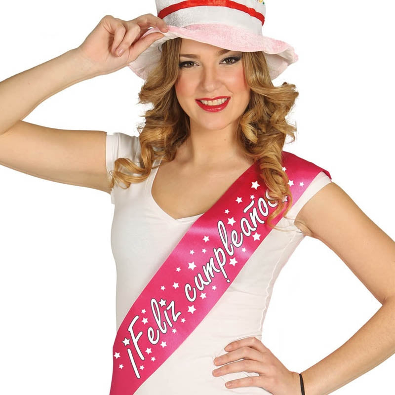 Si estáis celebrando el cumpleaños de amigos y amigas y queréis que el cumpleañero no pase desapercibido, esta Banda Feliz Cumpleaños dejará claro quién es el objeto de la fiesta de cumpleaños y “las primaveras” que lleva entre nosotros. Y es que no todoslos días se cumplen años. Utiliza esta banda de Feliz Cumpleaños para disfrazar a tu amigo o amiga en su fiesta de cumpleaños y sacar las fotos más cool del photocall.