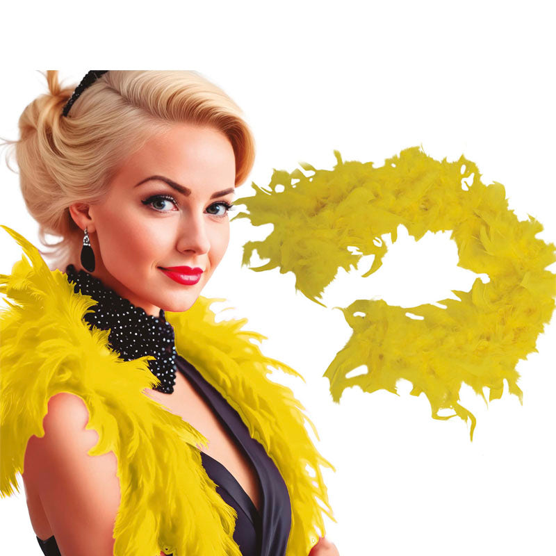 Complétez vos costumes Charleston et autres déguisements pour femme avec cette nouvelle boa couleur jaune à plumes très bon marché | Mesure : 180 cm | Poids : 40 gr