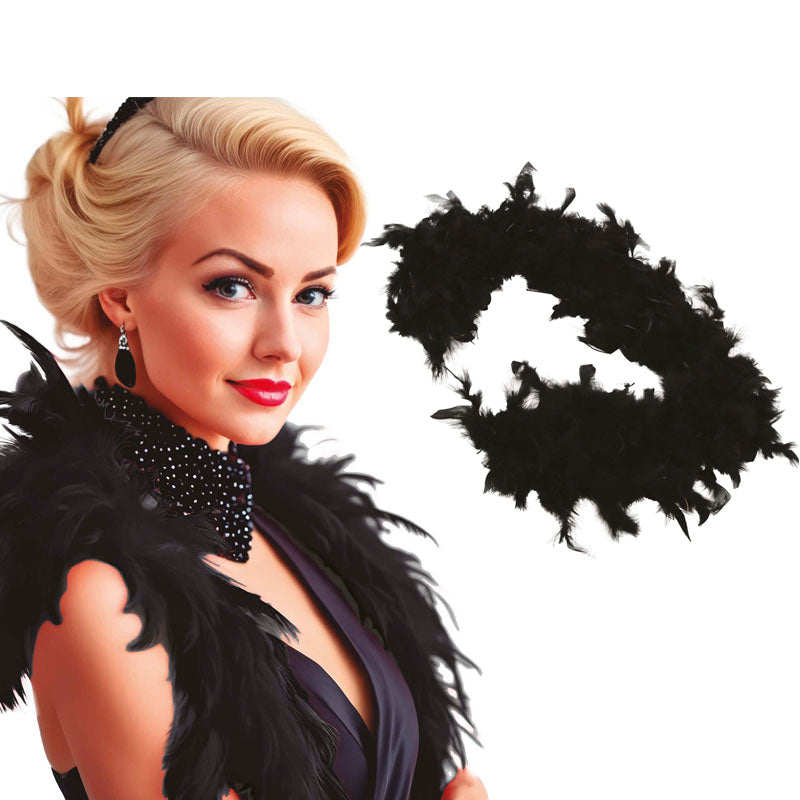 Complétez vos costumes Charleston et autres déguisements pour femme avec cette nouvelle boa couleur noire à plumes très bon marché | Mesure : 180 cm | Poids : 40 gr