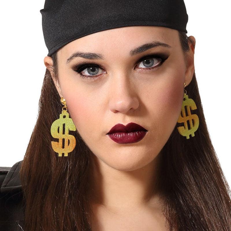 Boucles d'oreilles signe du dollar est la touche originale parfaite pour compléter votre costume de manière frappante et colorée lors de tout événement déguisé, Carnaval ou soirée costumée.