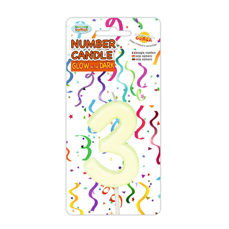 Nouvelles bougies d’anniversaire originales qui brillent dans le noir avec le numéro 3.