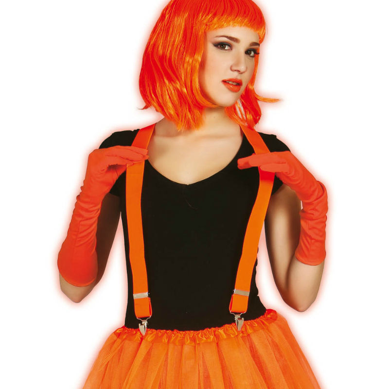 La touche fluo plus à la mode cet été! Bretelles orange fluo pour hommes et femmes. Ces nouvelles bretelles de couleurs vives donnent une touche de couleur à toutes vos tenues. Combinez-les avec des gants ou perruques.