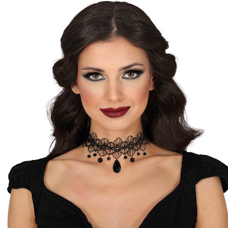 Collier ras-du-cou de vampire avec pierre noire est la touche terreur parfaite pour compléter votre costume Halloween de manière frappante et colorée lors de tout événement déguisé ou soirée costumée horrifiante.