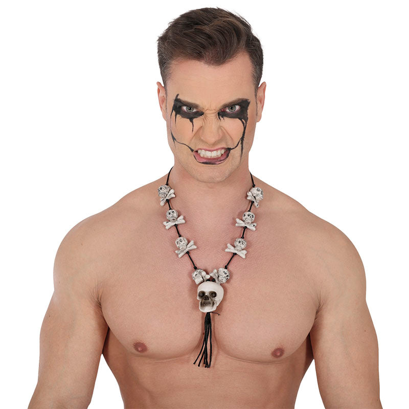 Collier Vaudou avec os est la touche terreur parfaite pour compléter votre costume Halloween de manière frappante et colorée lors de tout événement déguisé ou soirée costumée horrifiante.