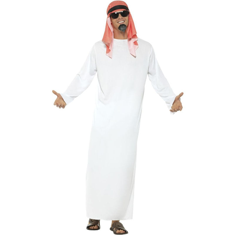 Le costume original Cheikh Pétrole pour hommes contient : Tunique et coiffe | Cette tenue adulte imitant Robe de cheikh est disponible en 2 tailles différentes