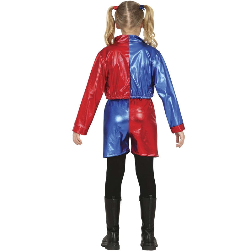 Le costume Halloween Harley Quinn Suicide Squad pour filles comprenant : veste, t-shirt et pantalon | Cette tenue effrayante fille imitant une Harley Quinn est disponible en 4 tailles différentes