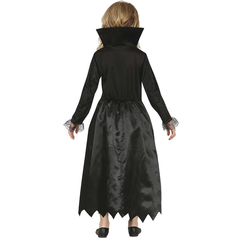 Le costume Halloween Vampiresse des ténèbres pour filles comprenant : Robe | Cette tenue effrayante fille imitant une Vampire est disponible en 4 tailles différentes