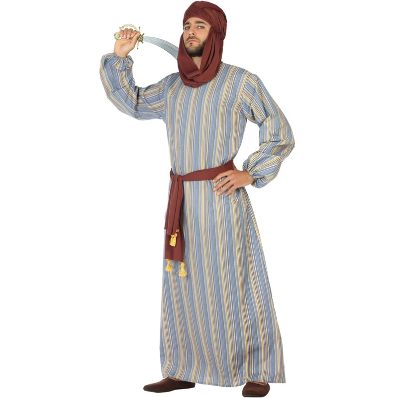 Si vous cherchez un costume d'homme du désert arabe, vous venez de toruvez le meilleur prix sur Internet. Obtenez vos costumes et déguisements arabes sans effort de chez vous et nous vous envoyons le déguisement du désert arabe pour hommes pour que vous receviez en quelques jours. Cet élégant déguisement prince arabe rayé pour homme fait partie de notre vaste catalogue en ligne de costumes d'hommes adultes pour un résultat original sur le carnaval, une fête à thème ou un enterrement de vie de garçon.