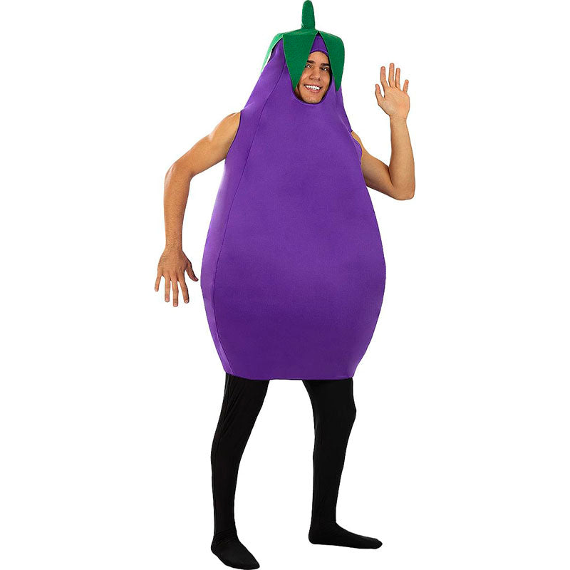 Le nouveau costume de Aubergine pour adultes contient : costume en forme d'aubergine | Ce déguisement exclusif, qui conviendra aussi bien aux hommes qu'aux femmes, imitant légume en forme d'aubergine, est disponible en taille unique.