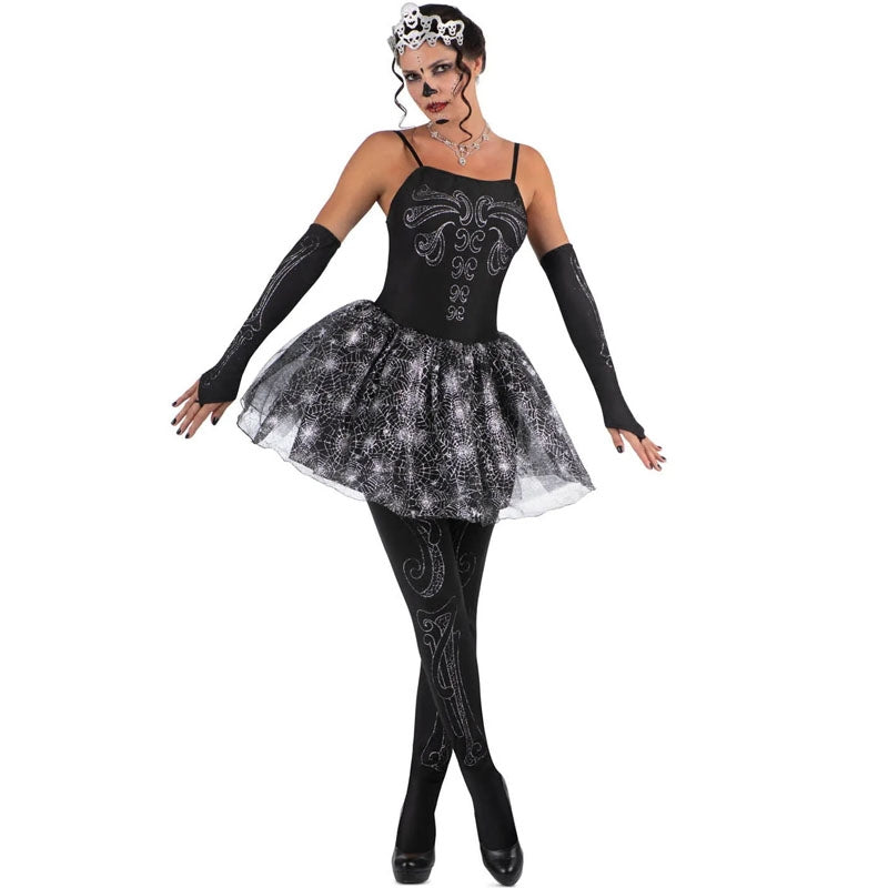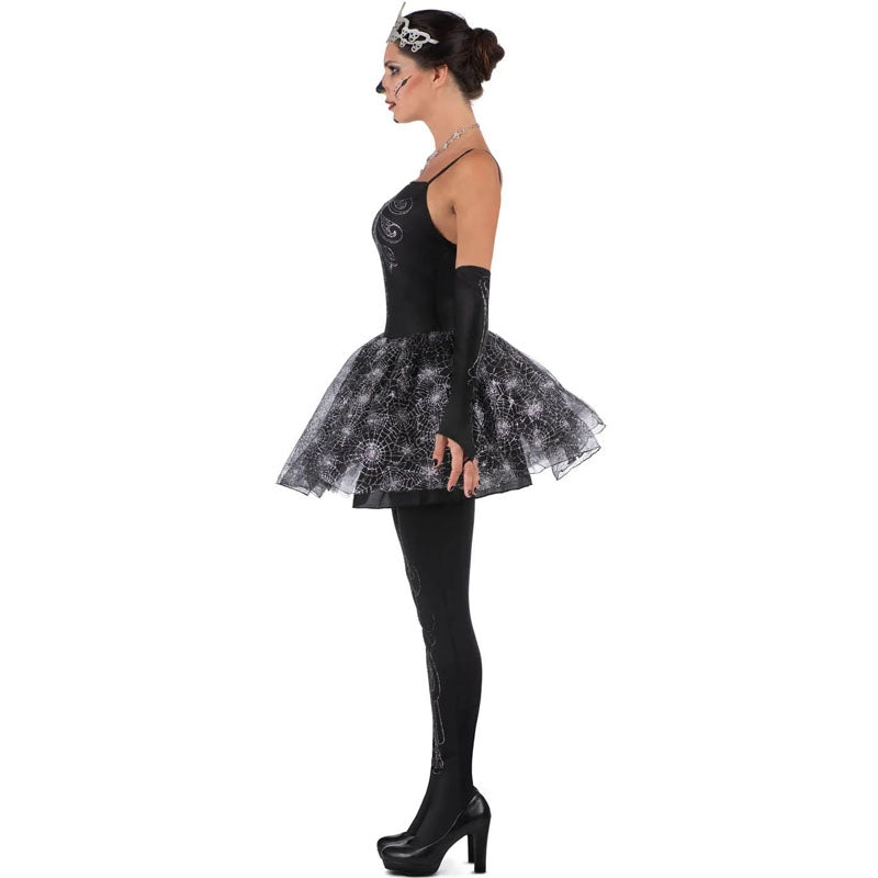 Le costume Halloween Ballerine squelette pour femmes contient : Diadème, robe, moufles et collants | Cette tenue sinistre femme imitant une sinistre danseuse de ballet est disponible en 3 tailles différentes