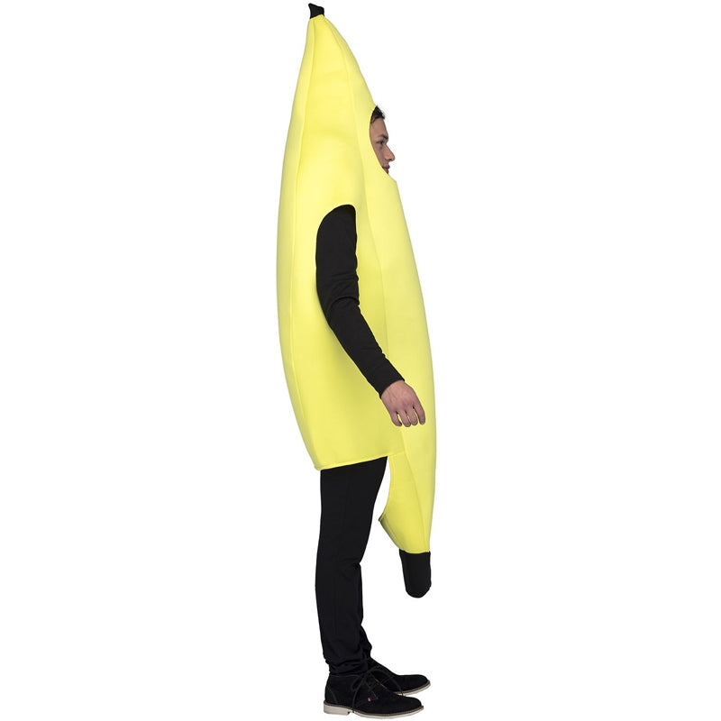 Le déguisement adulte imitant une Banane des canaries pour hommes et femmes contient: robe en mousse en forme de banane | Maillot noir pas inclus | Ce déguisement banane est disponible en taille unique