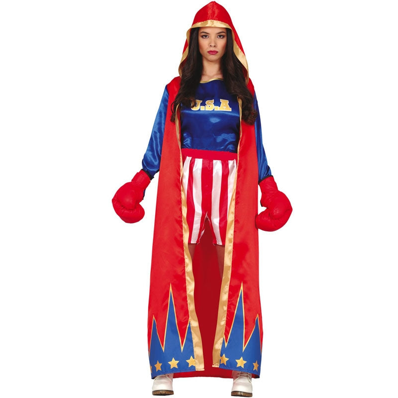 Devenez une voyante Boxeuse américaine en utilisant confortablement ce nouveau costume original pour femme. Ne manquez pas l'occasion de vous déguiser en Rocky Balboa avec cette tenue de carnaval féminine de taille adulte qui contient Robe, chemise, pantalon et est disponible en 2 tailles différentes. Ce nouveau déguisement de Boxeuse professionnelle femme est parfait pour vous habiller lors de votre prochaine fête ou défilé costumé. Il fait partie de notre vaste choix de costumes de carnaval pour femmes.