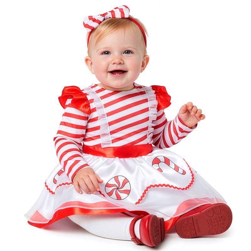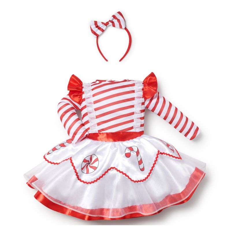 Le costume de Noël Canne en Sucre d’Orge pour bébés comprend: Diadème, robe | Ce déguisement de bébé Bonbon de Noël est disponible en 3 tailles et est parfait pour Noël