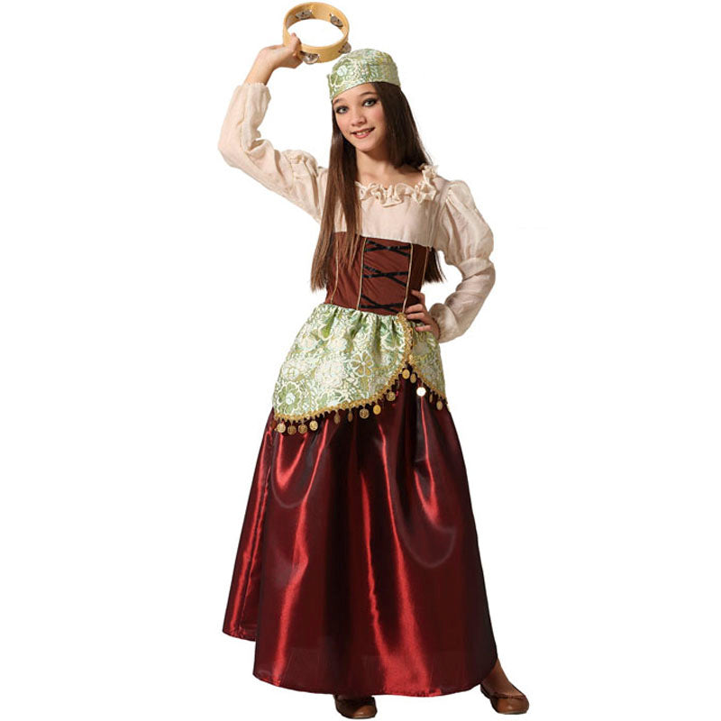 Le costume original Cartomancienne Pitonisa pour filles comprenant : robe et chapeau | Cette tenue fille imitant une Cartomancienne Pitonisa est disponible en 4 tailles différentes