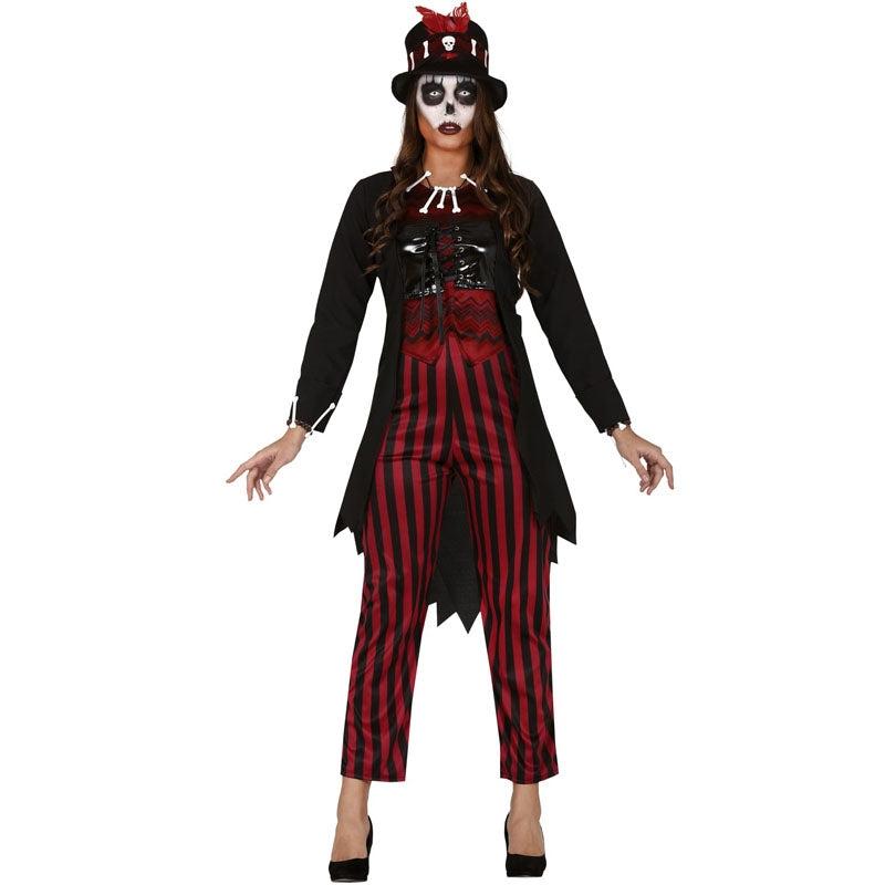 Le costume Halloween adulte imitant Chaman Vaudou pour femmes contient: chapeau, veste avec chemise et corset, pantalon | Ce déguisement femme Joker est disponible en 2 tailles différentes