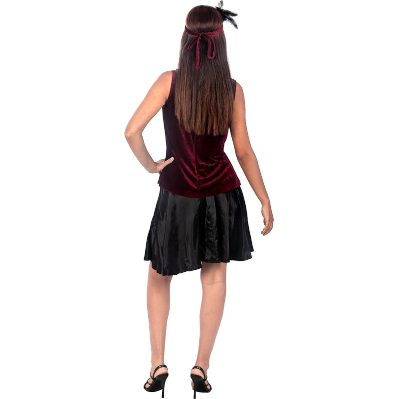 - Top de charleston en velours bordeaux avec détails de bijoux