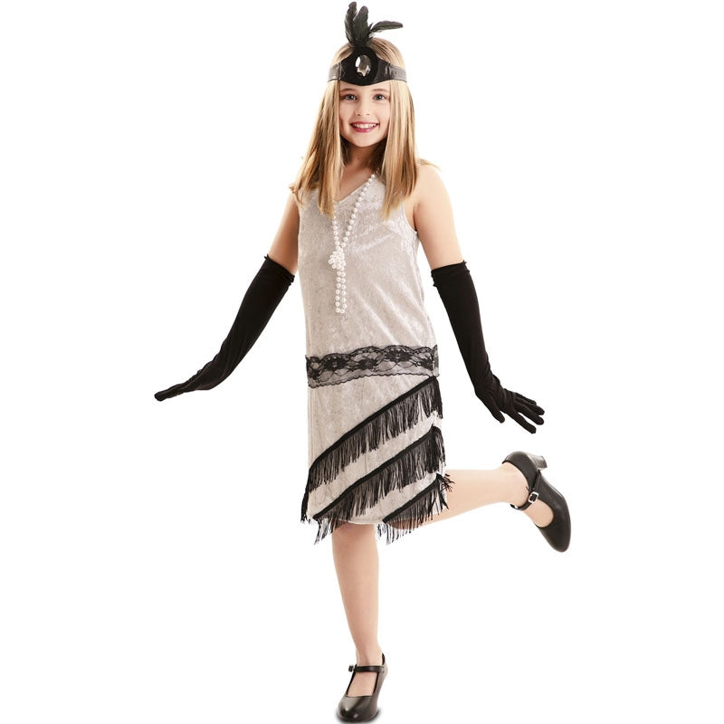 El elegante disfraz infantil de bailarina Charlestón para niñas incluye: vestido, vincha y guantes | Este traje charlestón de niña está disponible en 3 tallas distintas