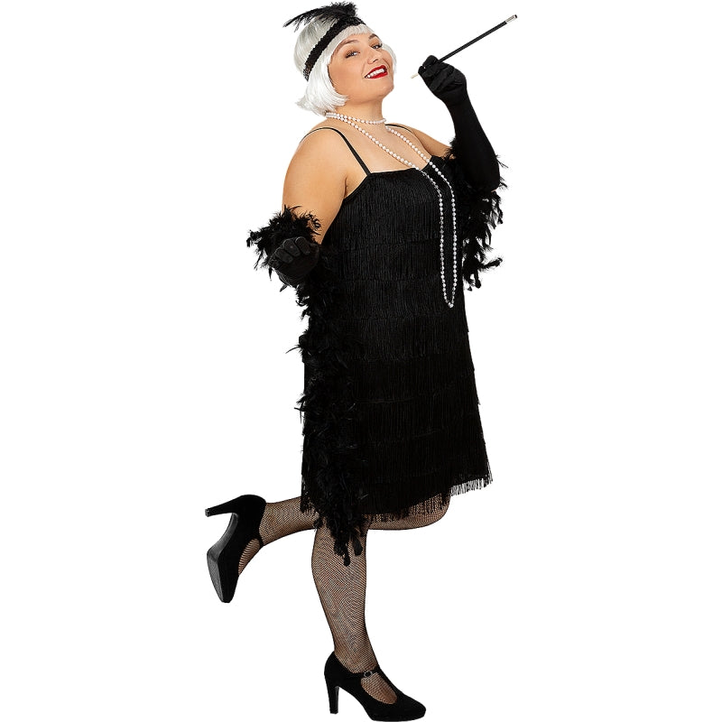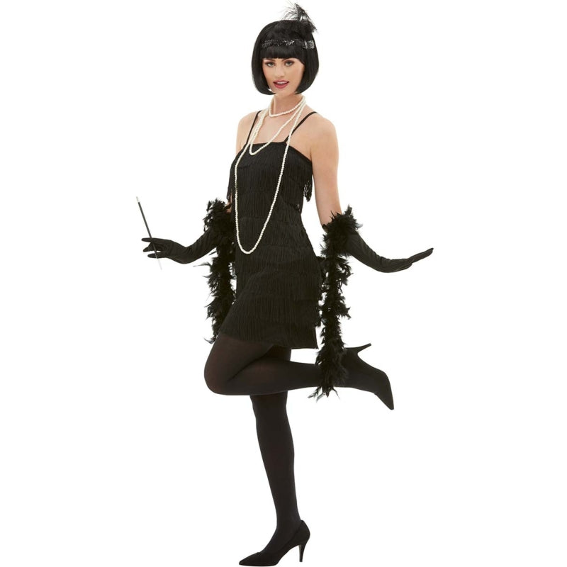 Ce costume exclusif de Charleston pour femmes contient : Robe, gants longs et bandeau | Ce déguisement de femme pour se transformer en cabaretière à franges et rythme des années 20 est disponible en 7 tailles différentes