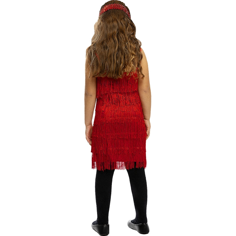 Le costume original Charleston Rouge pour filles comprenant : Robe et bandeau pour la tête | Cette tenue fille imitant une Robe Charleston rouge est disponible en 4 tailles différentes