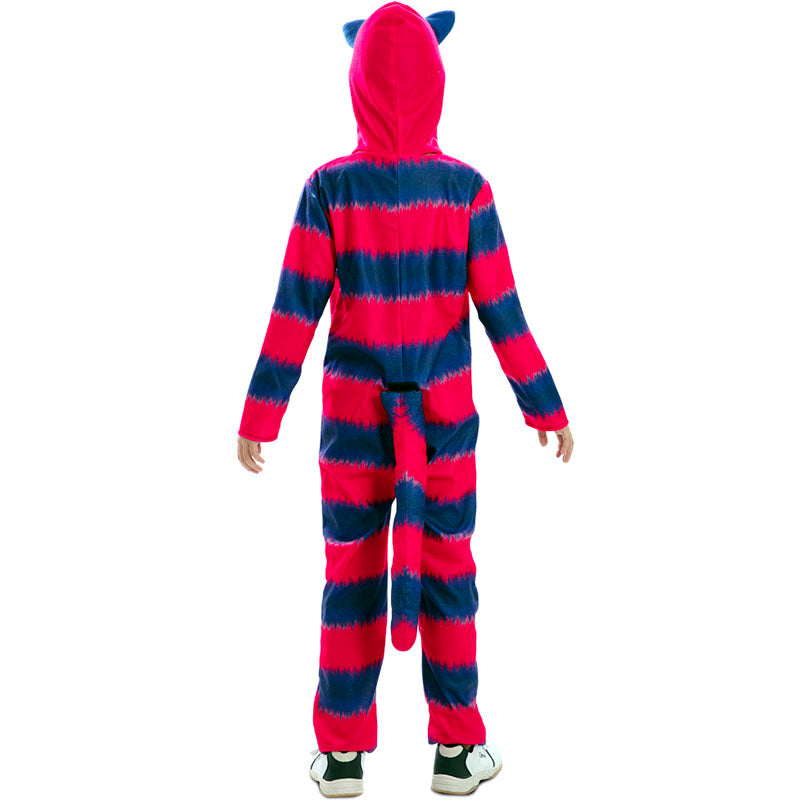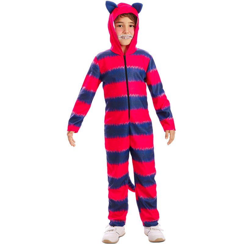 Le costume original pour garçons et filles de Chat du conte d’Alice comprend : combinaison avec capuche | Ce costume pour enfants imitant Chat souriant du Pays des Merveilles est disponible dans 4 tailles différentes