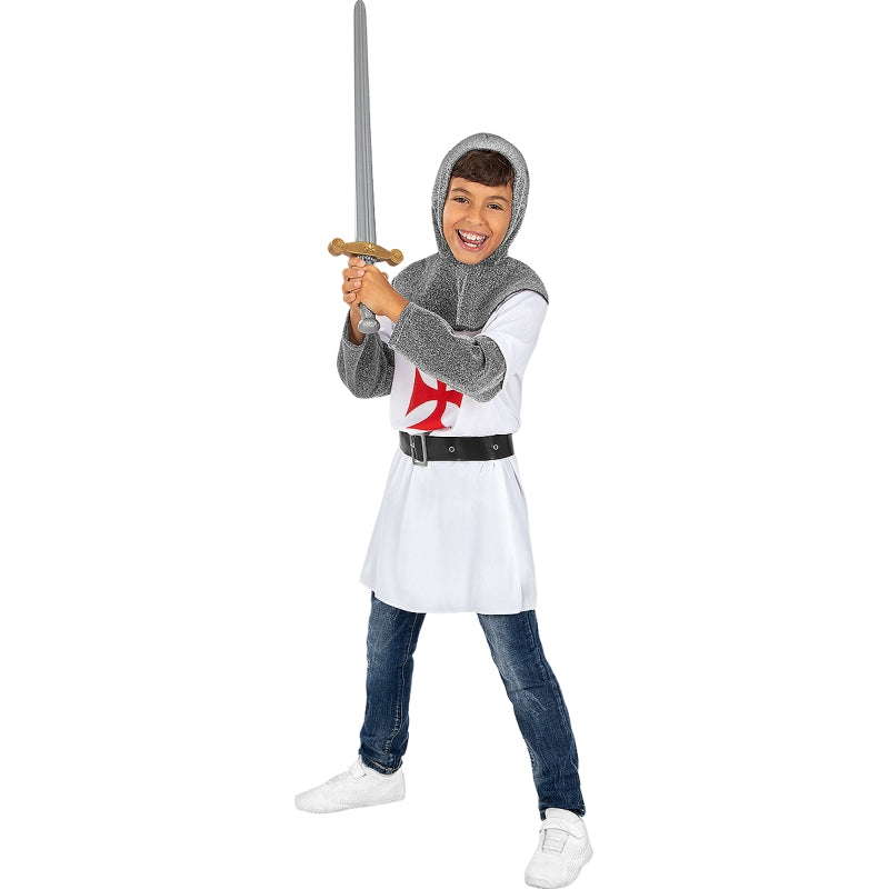 Le costume exclusif de Chevalier templier pour enfants comprend : Tunique, ceinture et cagoule | Ce tenue d'enfant imitant Chevalier templier croisé est disponible en 4 tailles différentes.