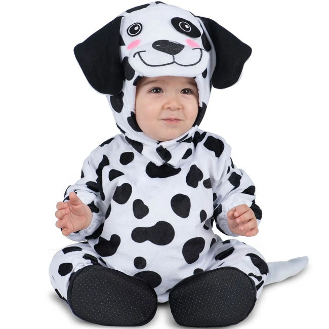 Le costume original Chien dalmatien pour bébés contient : combinaison, chapeau, queue et chaussons | Cette tenue bébé imitant chien dalmatien mignon est disponible en 3 tailles différentes