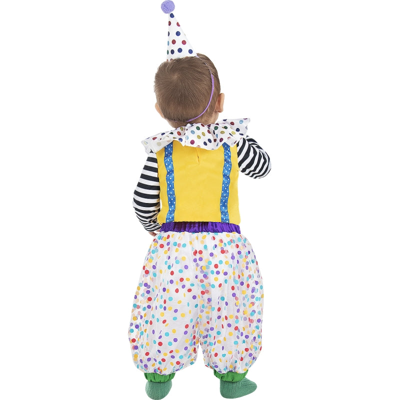 Le costume original pour bébés de Clown Deluxe comprend : pantalon, t-shirt, collerette et bonnet | Cette tenue de bébé exclusive, imitant un Clown joyeux édition Deluxe, est disponible dans 3 tailles différentes.