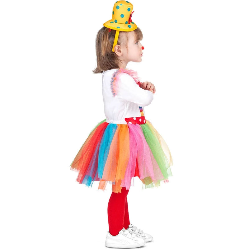 Le costume original clown tutu multicolore pour bébés contient : robe et chapeau | Cette tenue bébé imitant clown avec jupe tutu est disponible en 2 tailles différentes
