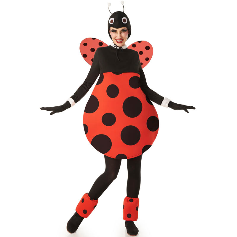 Le costume original de Coccinelle dodue pour femmes contient : capuche, corps, guêtres et ailes | Cette tenue femme imitant coccinelle potelée est disponible en 4 tailles différentes