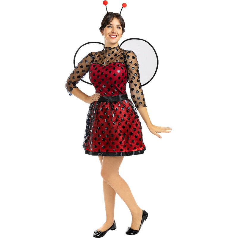 Ce costume exclusif de Coccinelle Printanière pour femmes contient : Robe, serre-tête avec antennes et ailes | Ce déguisement de femme pour se transformer en insecte ailé avec charme et touche naturelle est disponible en 4 tailles différentes
