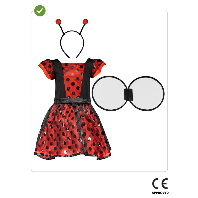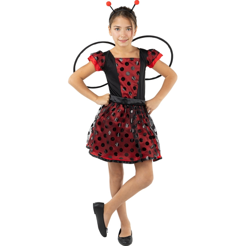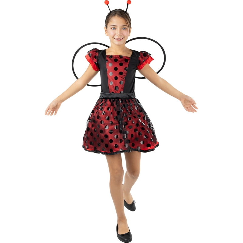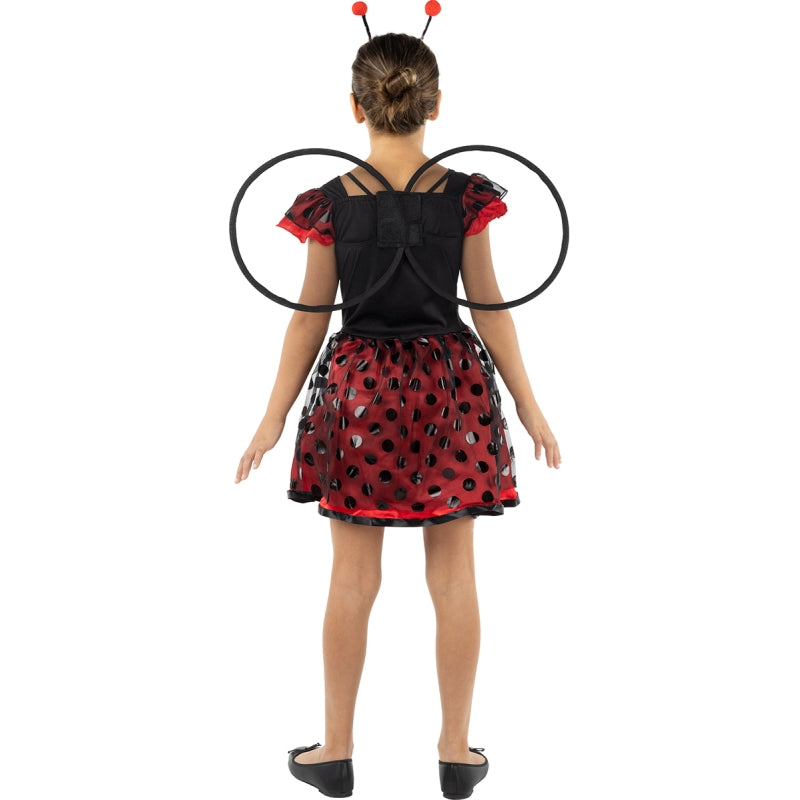 Le costume original Coccinelle Sauvage pour filles comprenant : Robe, serre-tête avec antennes et ailes | Cette tenue fille imitant une Coccinelle sauvage avec ailes est disponible en 4 tailles différentes