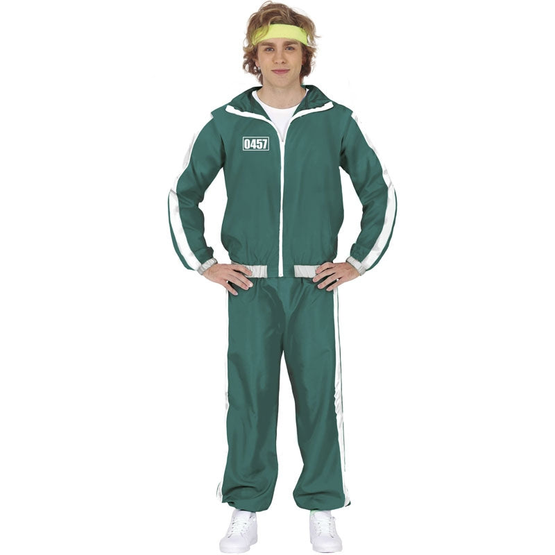 Le costume original concurrent Squid Game pour hommes contient : survêtement vert | Cette tenue adulte imitant un joueur de la série Squid Game est disponible en 3 tailles différentes