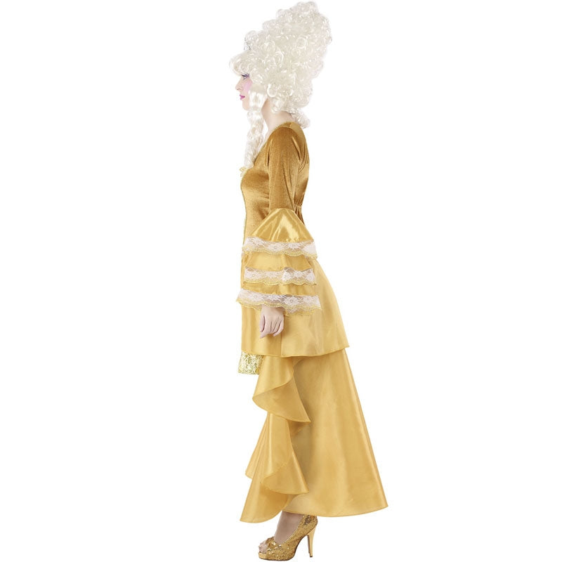 Le costumes adulte imitant une Courtisane Belle Époque couleur doré pour femmes contient : robe | Ce déguisement femme Courtisane doré est disponible en 3 tailles différentes