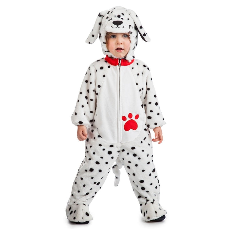 Le costume original Dalmatien Peluche pour bébés contient : Combinaison avec queue, tête et fermeture éclair | Cette tenue bébé imitant Petit Chien Dalmatien Doux est disponible en 2 tailles différentes