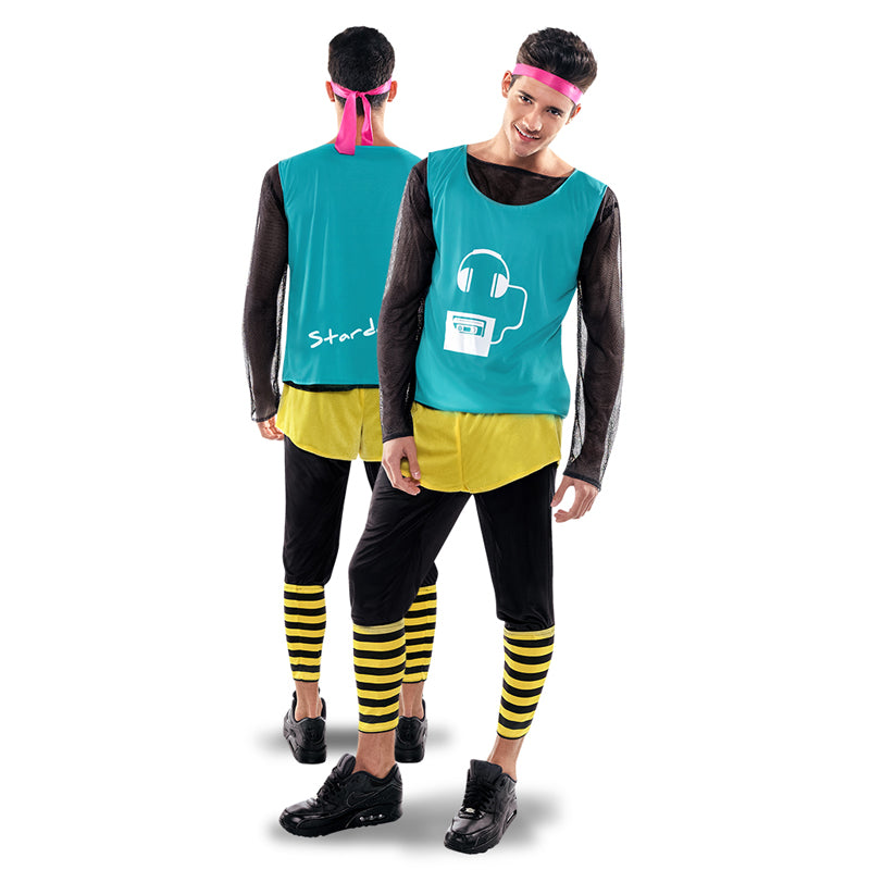 Le costume pour homme Dance Star des années 80 en vert contient: 2 chemises, 2 pantalons, guêtres et bandeau.