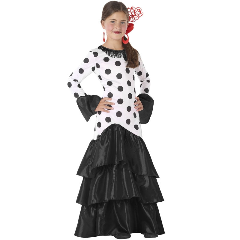 Ce costume féminin pour enfant lui permettant devenir une Danseuse Sévillane Macarena comprend : la robe blanche à pois noirs et le bas et les manches en couleur noir et est disponible en 4 tailles différentes. Si vous choisissez d'acheter ce déguisement andalouse Macarena fille vous pourrez l'apprécier en quelques jours chez vous. Vous ne croirez pas à quel point il peut être peu coûteux de se caractériser avec ce déguisement Danseuse Flamenco Macarena pour fille lors d’une fête thématique.