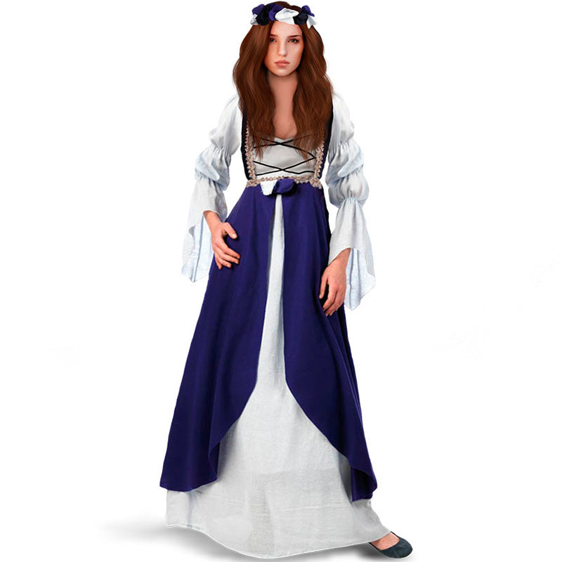Le costume original de Demoiselle Moyen Age bleu pour femmes contient : robe | Cette tenue femme imitant Jeune fille de la cour médiévale en robe bleue est disponible en taille unique