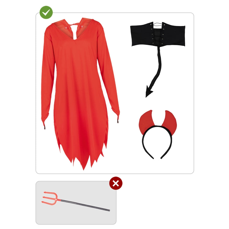 La nuit d'Halloween est sur le point de commencer et cette année, c'est toi qui ensorcellera tout le monde avec style. Imagine arriver à une fête costumée effrayante et que tous les regards se posent sur ton Costume Femme Démon. Devenir la reine de la nuit n'a jamais été aussi simple : ailes noires, queue et le corset mettent en valeur ta personnalité audacieuse, tandis que le diadème avec cornes révèle ton côté le plus coquin. Si tu cherches de l'inspiration pour semer la terreur et briller avec confiance, cette tenue est pour toi. Trouve plus d'idées dans notre collection de déguisements de Halloween et vis une expérience unique à n'importe quel événement festif.