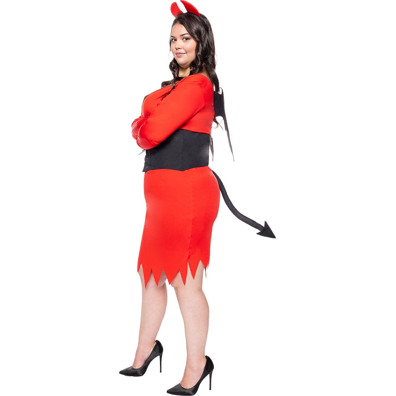 Ce costume exclusif de Démon femme pour femmes contient : Robe avec ailes, corset avec queue et serre-tête à cornes | Ce déguisement de femme pour se transformer en diablesse infernale au regard brûlant est disponible en 6 tailles différentes