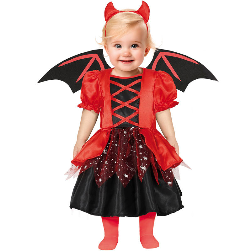 Transformez votre bébé en Démone infernale avec ailes facilement grâce à ce nouveau costume terrifiant taille bébé. Le 31 octobre tant attendu arrive et tout le monde est à la recherche d'idées de déguisements pour Halloween lla possibilité pour les plus petits de la maison et les nouveau-nés de se déguiser en Démone avec ailes infernalesavec ce costume d'Halloween pour bébé contenant Robe, ailes et diadème et disponible en 2 tailles différentes semble effrayante pour célébrer leur première fête d'Halloween, un défilé à la maternelle, des photos adorablement terrifiantes dont on se souviendra... Nous ne doutons pas que le nouveau costume bébé Démone de l'enfer avec ailes fera baver les grands-parents et les autres membres de la famille. Il fait partie de notre vaste collection de costumes d'Halloween pour bébés. Achetez ce déguisement Démone infernale avec ailes pour bébé Halloween afin de transformer votre bébé pour la nuit la plus sombre de l'année et de lui faire passer un moment effrayant.