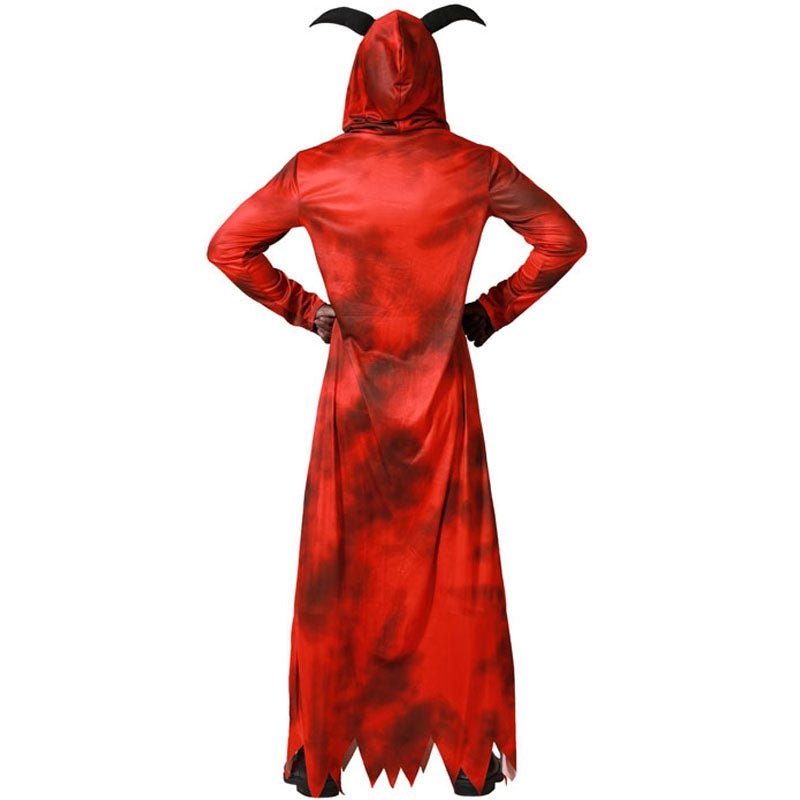Le costume Halloween Diable à pentacle ppour hommes contient : tunique avec capuchon | Cette tenue horrifique adulte imitant un diable avec un pentacle sur la poitrine est disponible en 4 tailles différentes