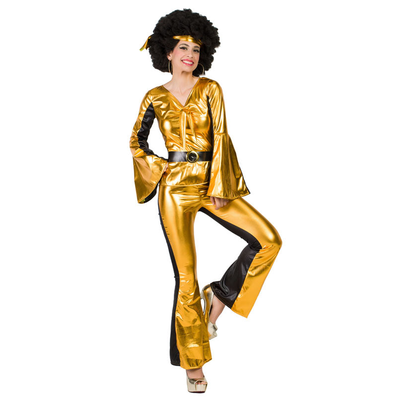 Déguisez-vous en femme disco couleur or avec cet insolite déguisement taille pour femme. Vous allez devenir l'invitée féminine plus acclamée arrivant a la fête avec ce costume disponible en taille unique. Les meilleurs prix Internet en déguisements pour femmes.