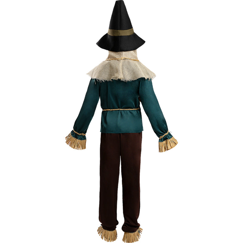 Le costume exclusif de L'épouvantail du conte Le Magicien d'Oz pour enfants comprend : pantalon, veste, capuche | Ce tenue d'enfant imitant L'épouvantail, l'un des compagnons de Dorothy dans le conte Le Magicien d'Oz. est disponible en 4 tailles différentes.