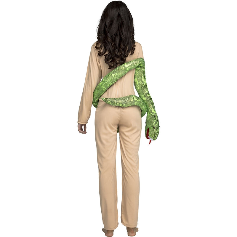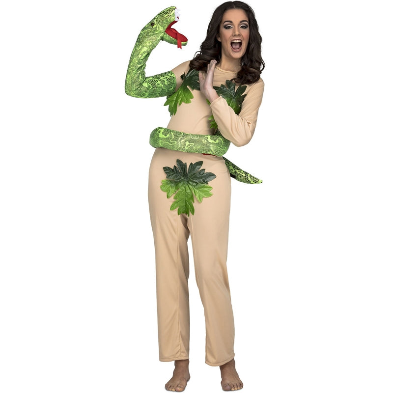 Le costume adulte imitant le personnage Eve au Paradis pur femmes contient: combinaison et serpent | Cet original déguisement Eve femme est disponible en taille unique