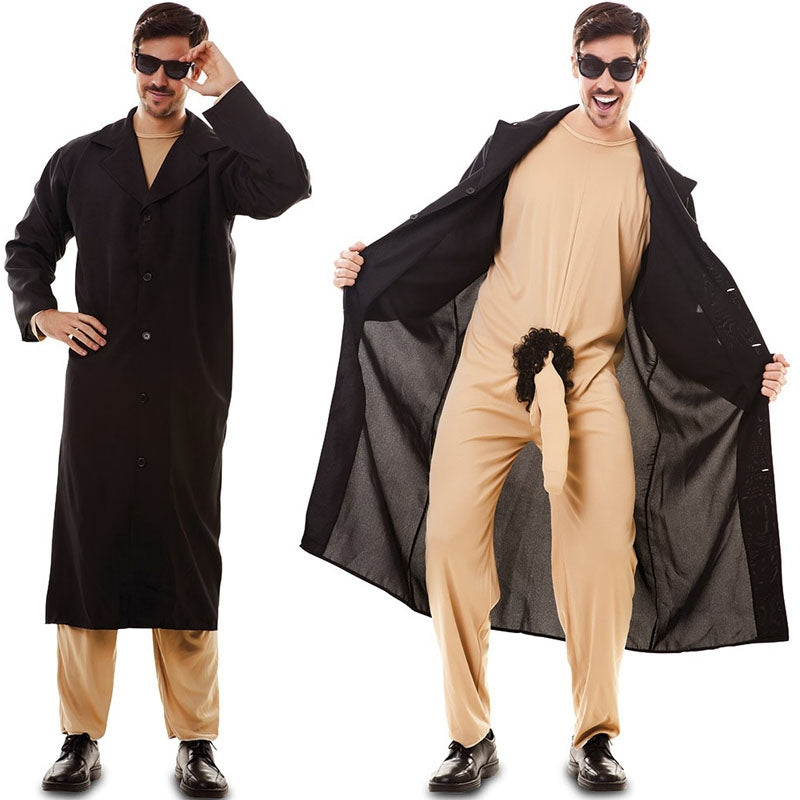 Le costume original Exhibitionniste en manteau pour hommes contient : Sous-vêtements et veste | Cette tenue adulte imitant un pervers est disponible en taille unique