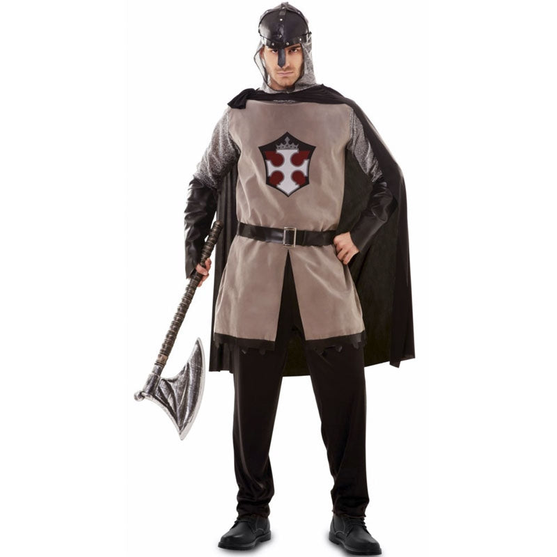 Le costume original Guerrier du Moyen-Âge pour hommes contient : manteau avec cape et casque, pantalon, ceinture et guêtres | Cette tenue adulte imitant guerrier médiéval est disponible en taille unique
