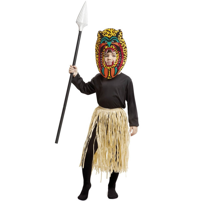 Le déguisement enfant imitant un Zoulou tribu cannibale pour garçons contient: Chemise, jupe et masque | Ce déguisement Cannibale garçon est disponible en 3 tailles différentes
