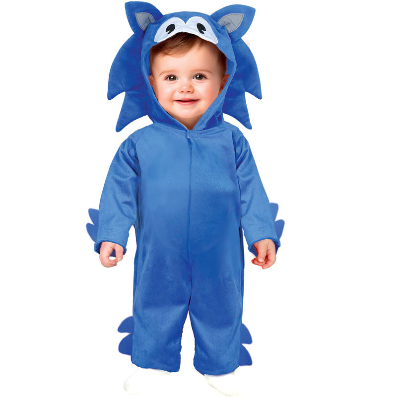 Le costume original Hérisson bleu pour bébés contient : Combinaison à capuche | Cette tenue bébé imitant Hérisson rapide de jeu vidéo est disponible en 2 tailles différentes