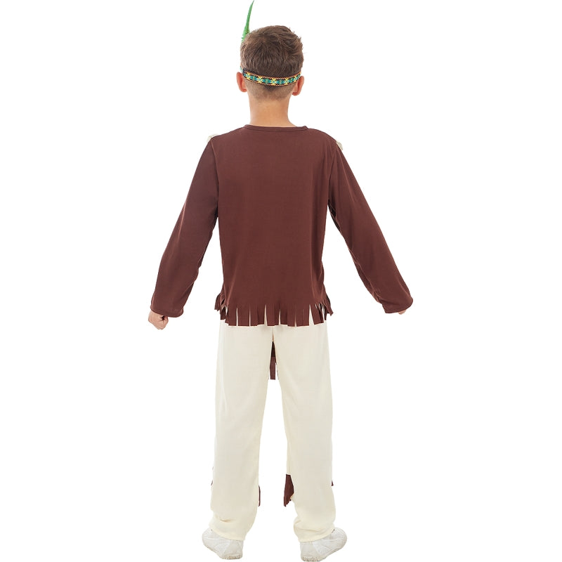 Le costume exclusif de Indien Sioux pour enfants comprend : T-shirt, pantalon et bandeau | Ce tenue d'enfant imitant Guerrier indien Sioux est disponible en 4 tailles différentes.